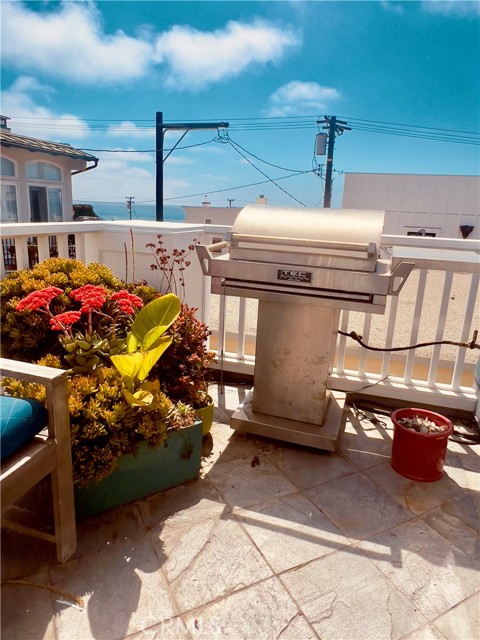 Ocean Breezes abound in this well appointed home steps to the Hermosa Beach Sand. This home offers a reverse floor plan to maximize the views. Gourmet Kitchen boasts Wolf Stove and Oven Combo, Sub-Zero Refrigerator and Instant Hot water faucet. Top floor includes a living room, dining room and smaller sitting room. Balcony off the back leads to a Roof Top deck with views for days. Roof Top deck includes a seating area and fire pit. Small balcony on the front would be perfect for morning coffee. Middle level holds 3 en suite bedrooms including the Primary. Primary bathroom has soaking tub and large shower, plus a large walk in closet. Laundry room is located on this level. Lower level has massive wine cellar another bedroom and an office with built ins that could also be used as a bedroom. Bottom open area can be another family room or game room. Large TV is located on the bottom level. Garage access from lower level. Plenty of closets through out for storage. Located in the desirable North Hermosa area, half way between the Hermosa and Manhattan piers and downtown areas.